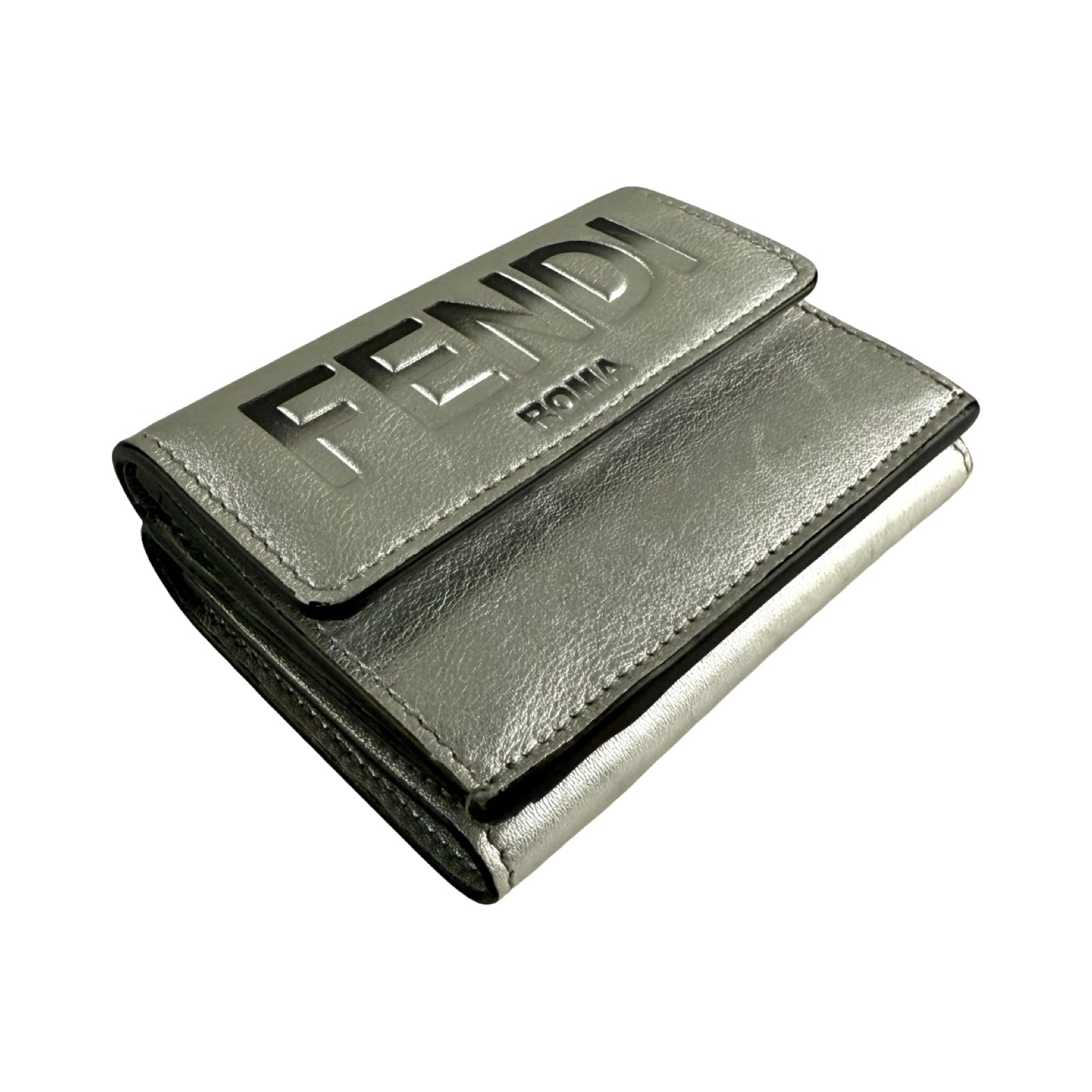 Fendi - Embossed Metallic Silver Trifold Wallet