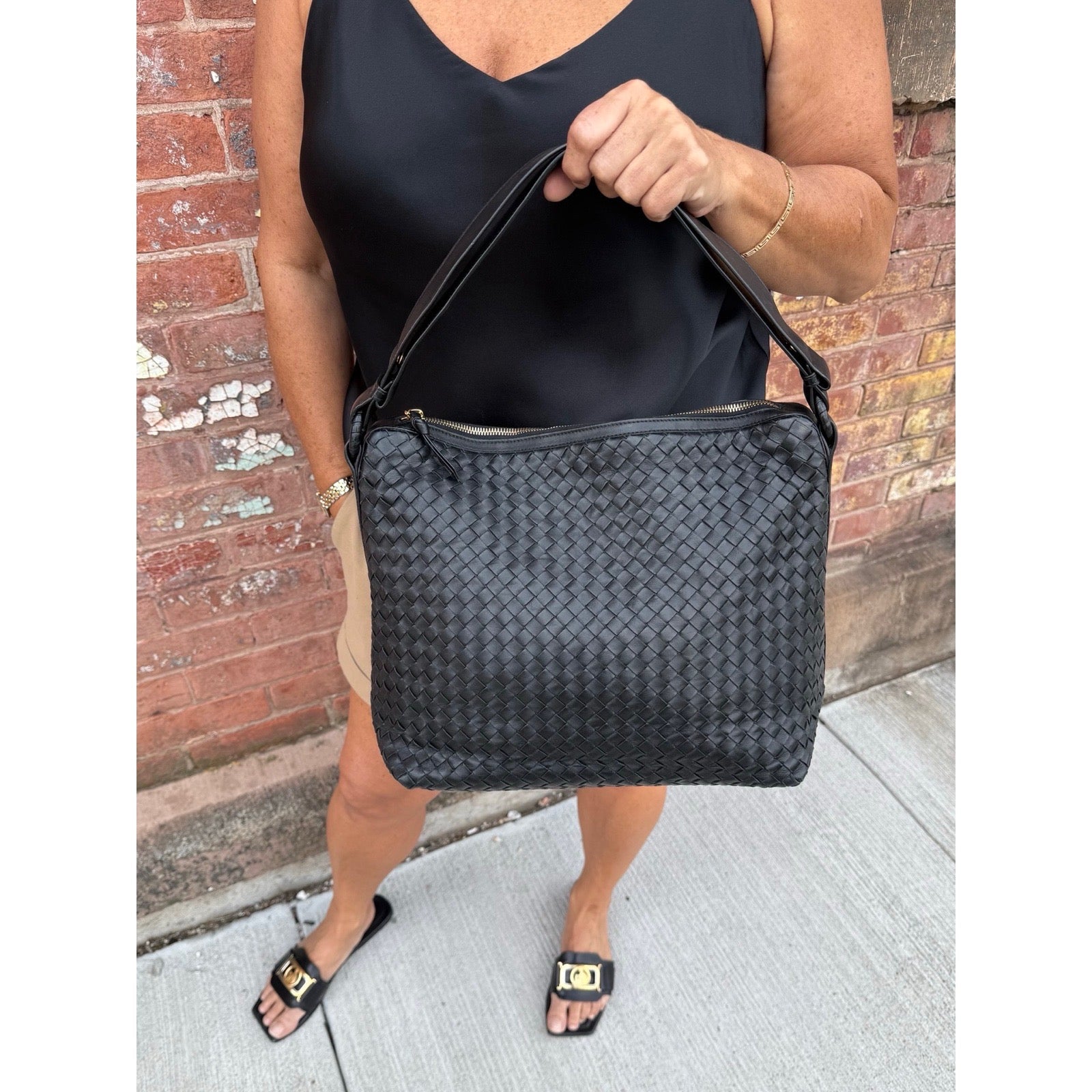 Bottega Veneta - Black Leather Intrecciato 2-way Messenger Bag