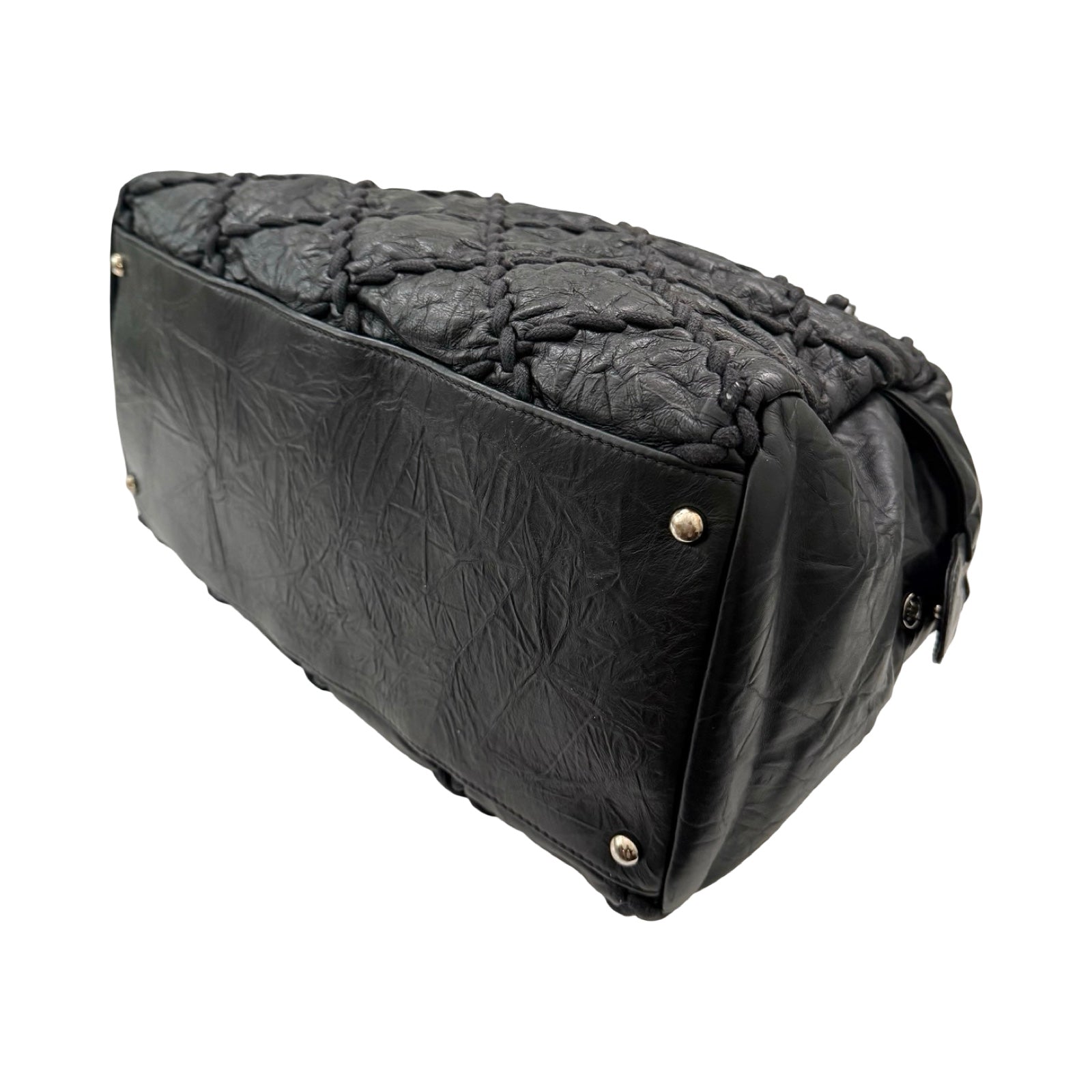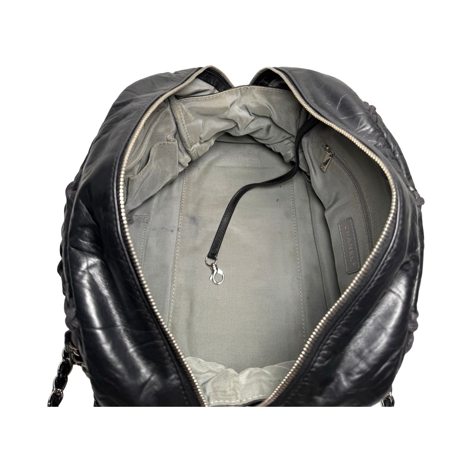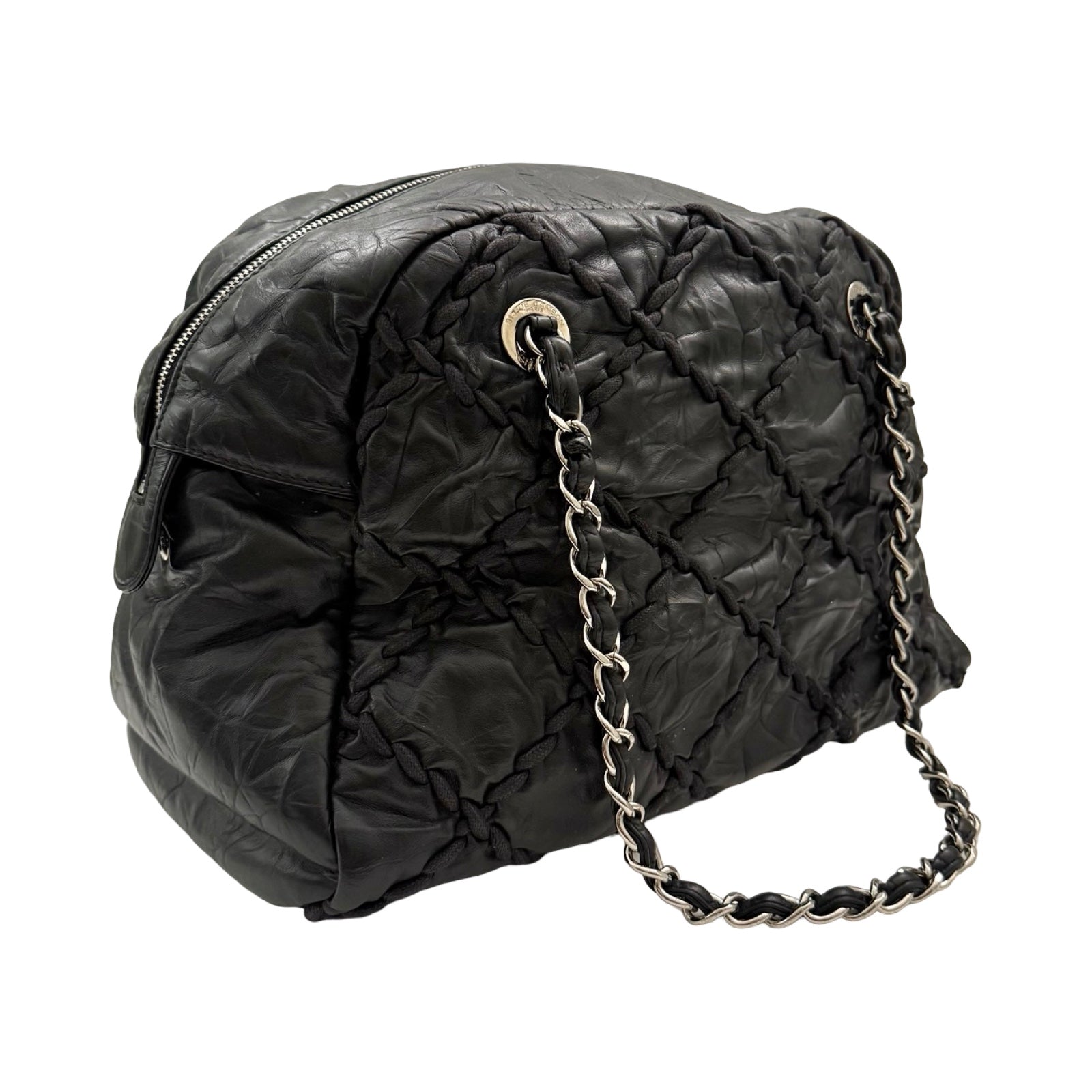 Chanel - CC Black Crinkled Leather Ultra Stitch Bowler Bag