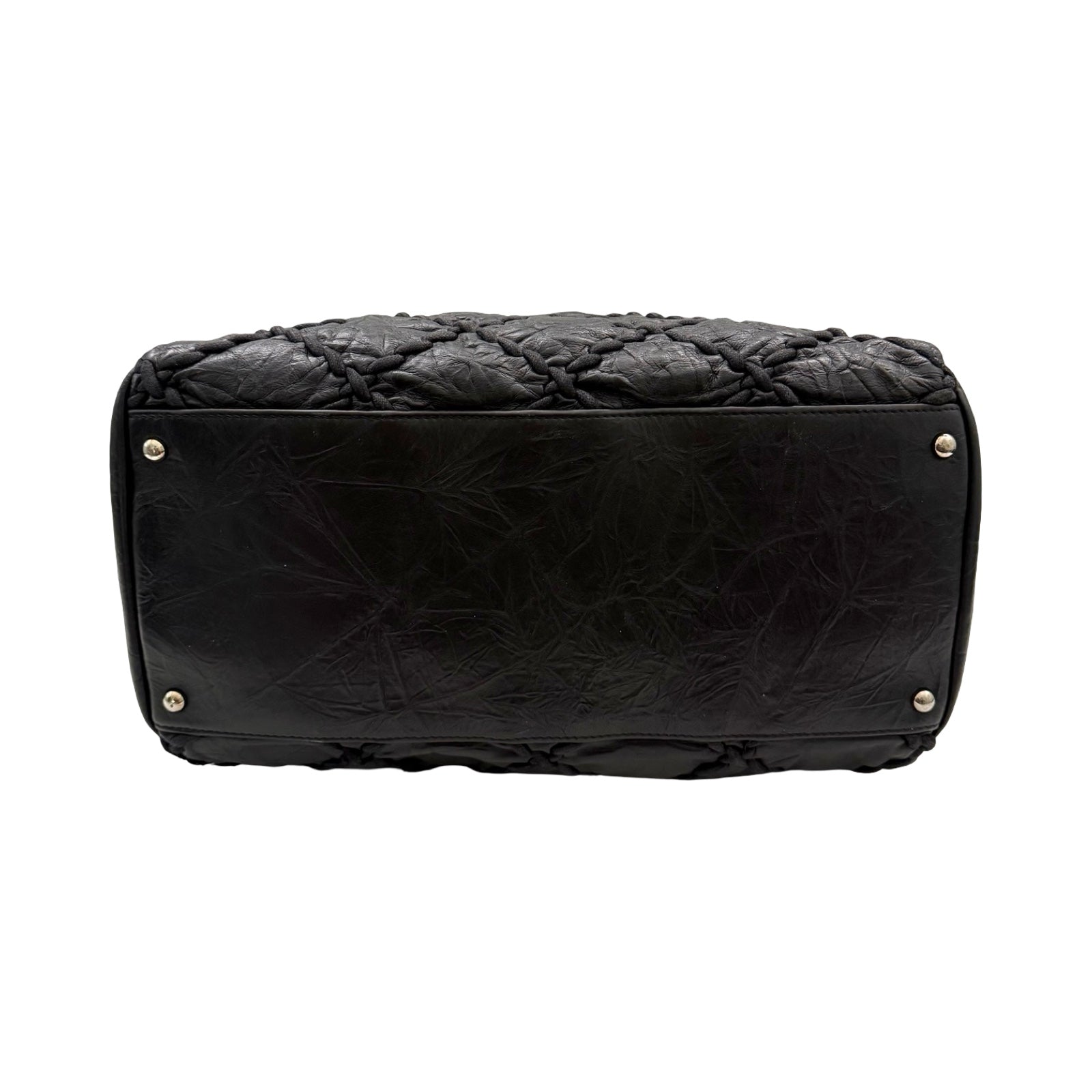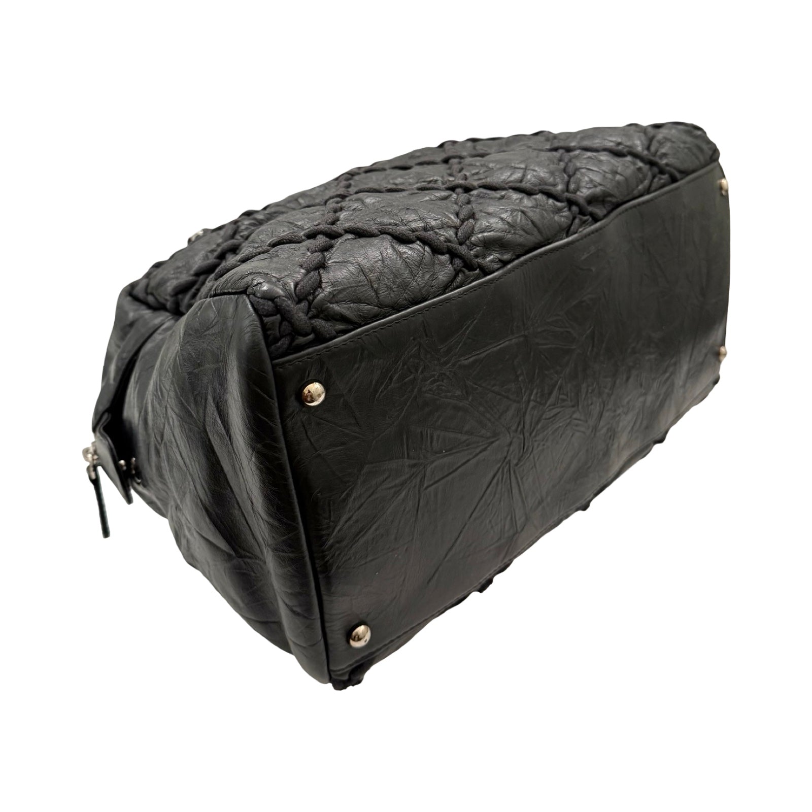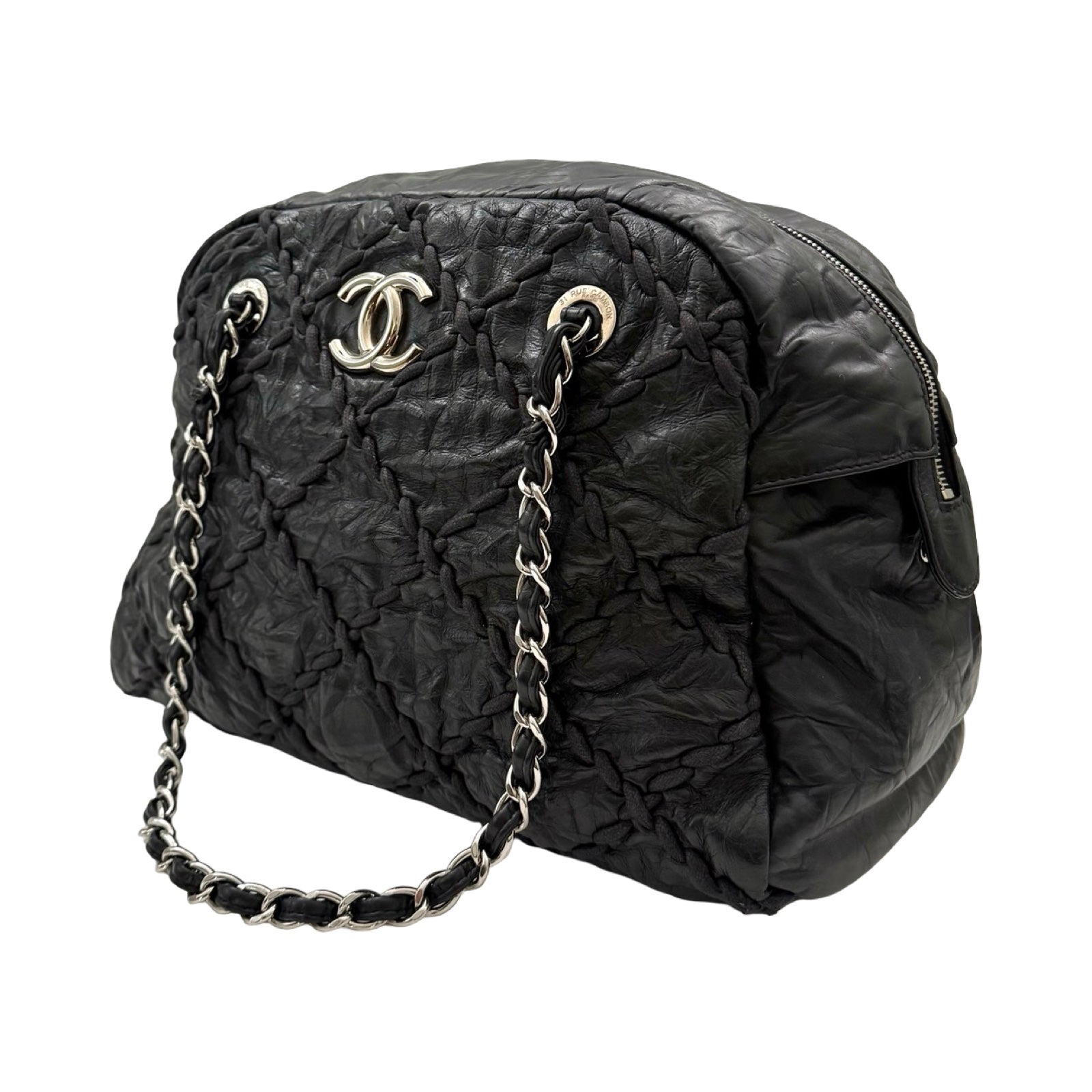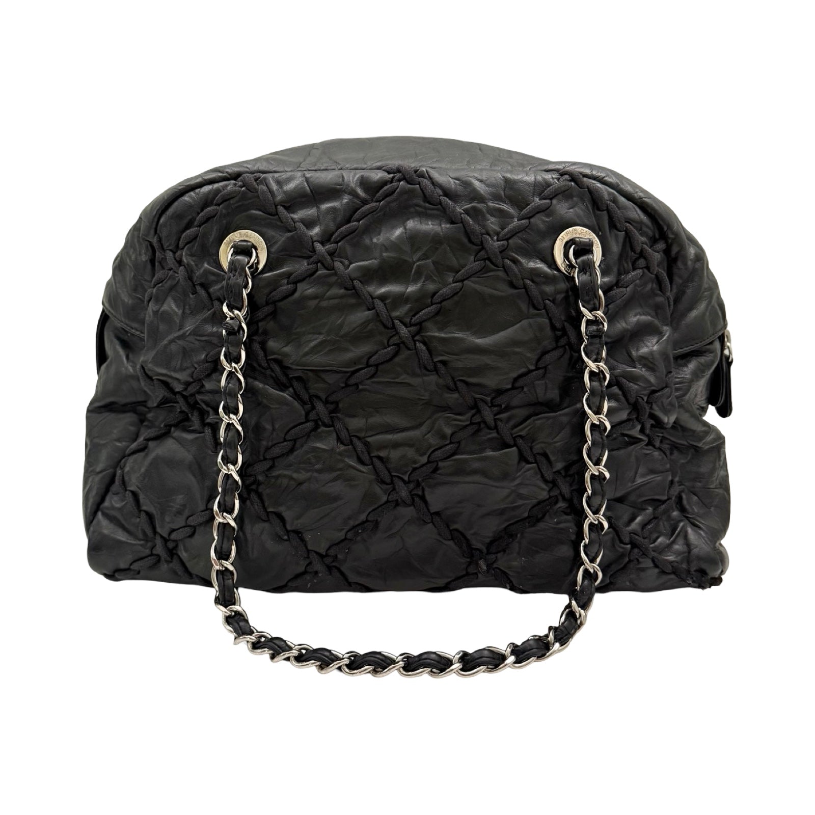 Chanel - CC Black Crinkled Leather Ultra Stitch Bowler Bag