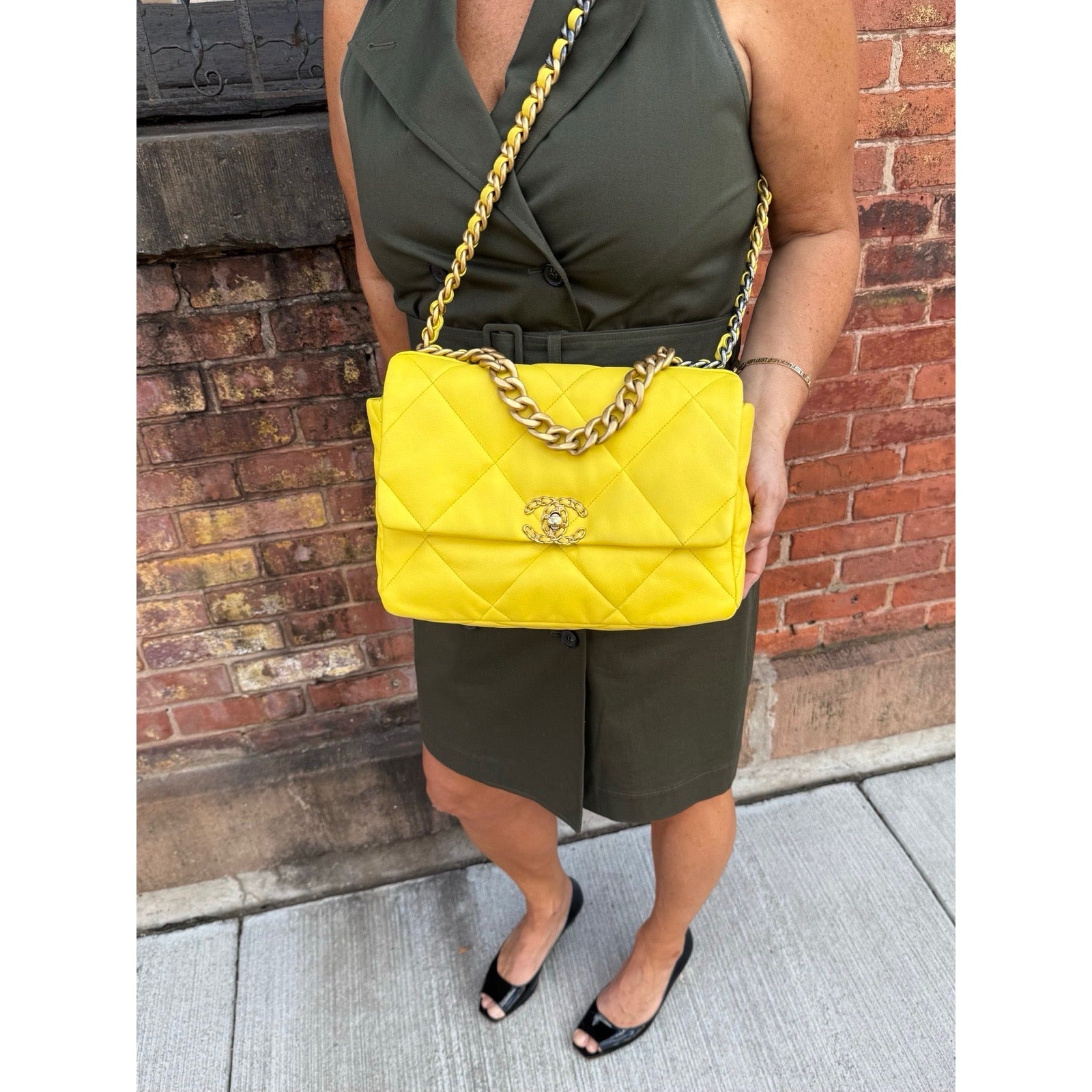 Chanel - CC Yellow Quilted 19 Large Flap Bag