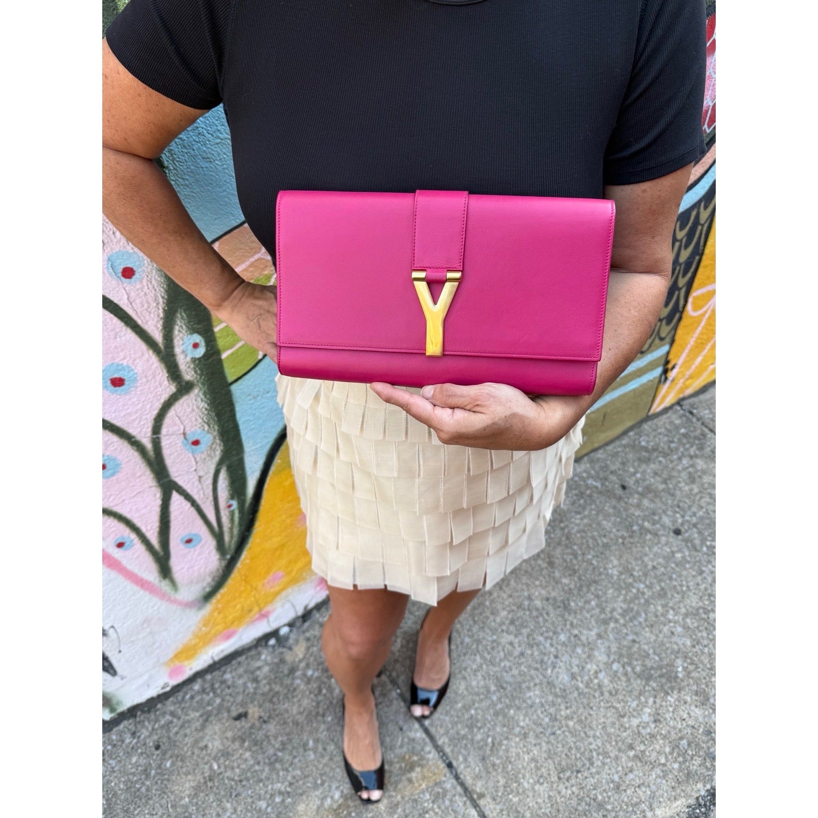 Saint Laurent - Y Ligne Fuchsia Leather Clutch