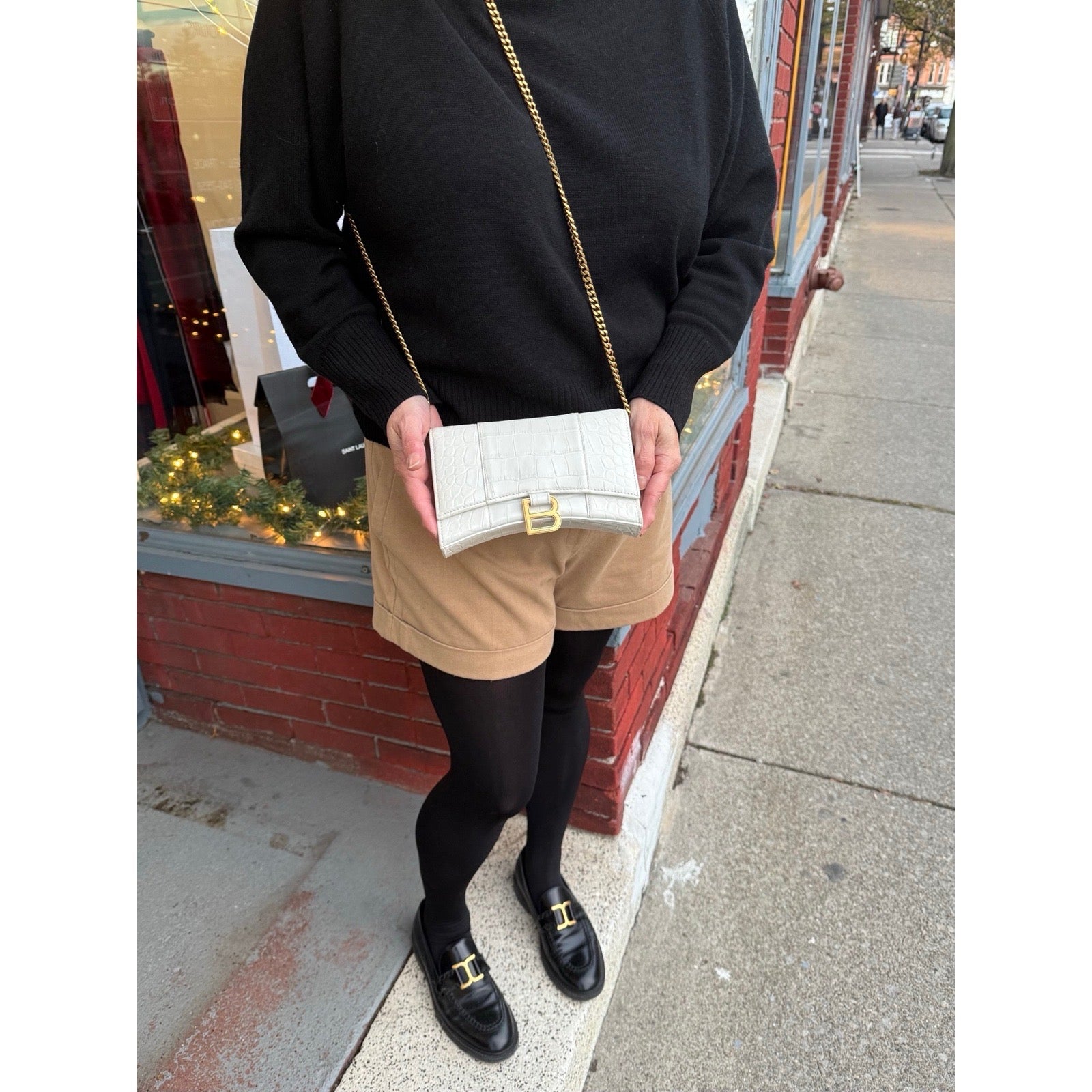 Balenciaga - White Croc Embossed Leather Hour Glass Wallet On Chain