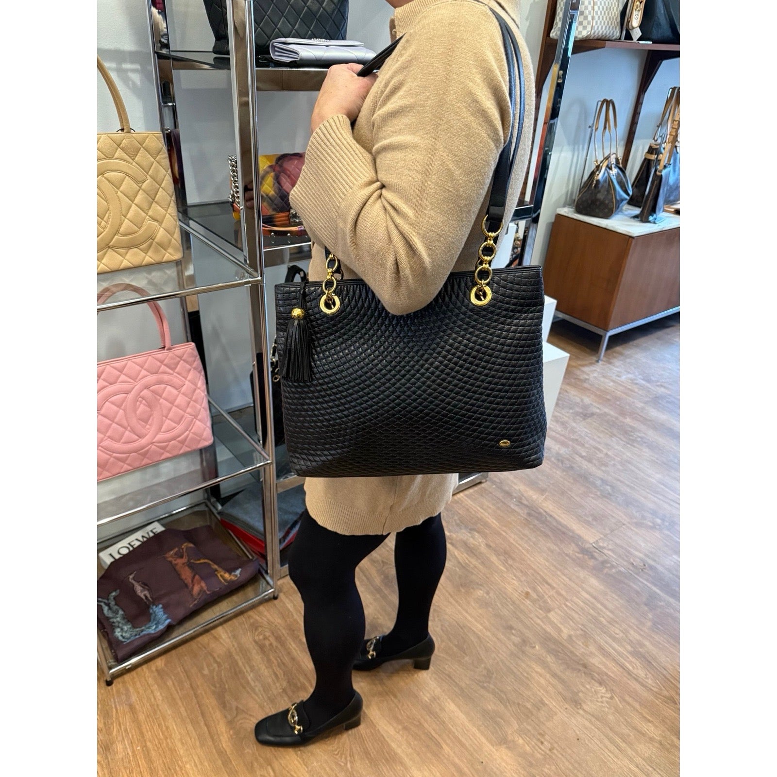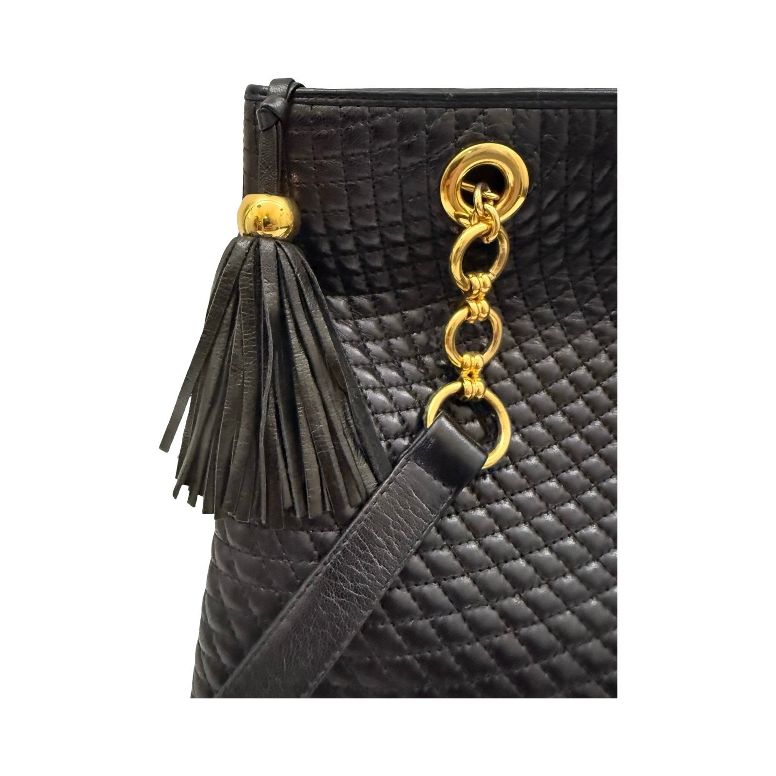 Bally - Vintage Black Quilted Tassle Tote
