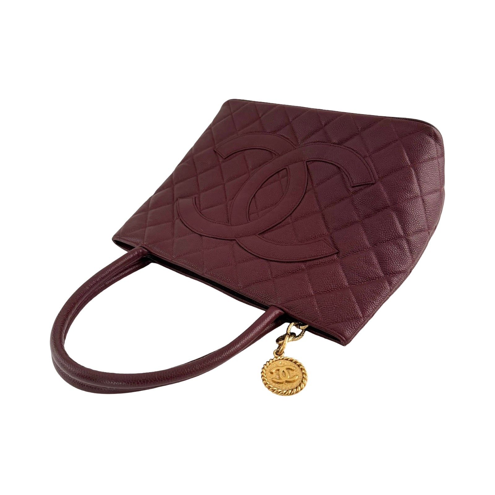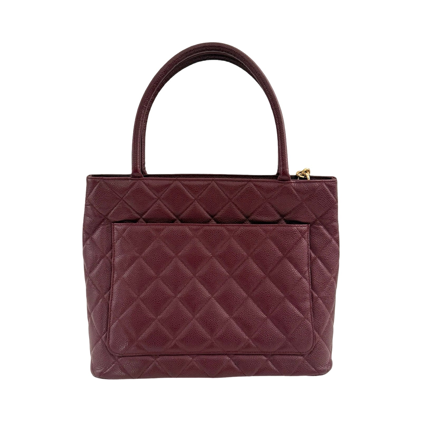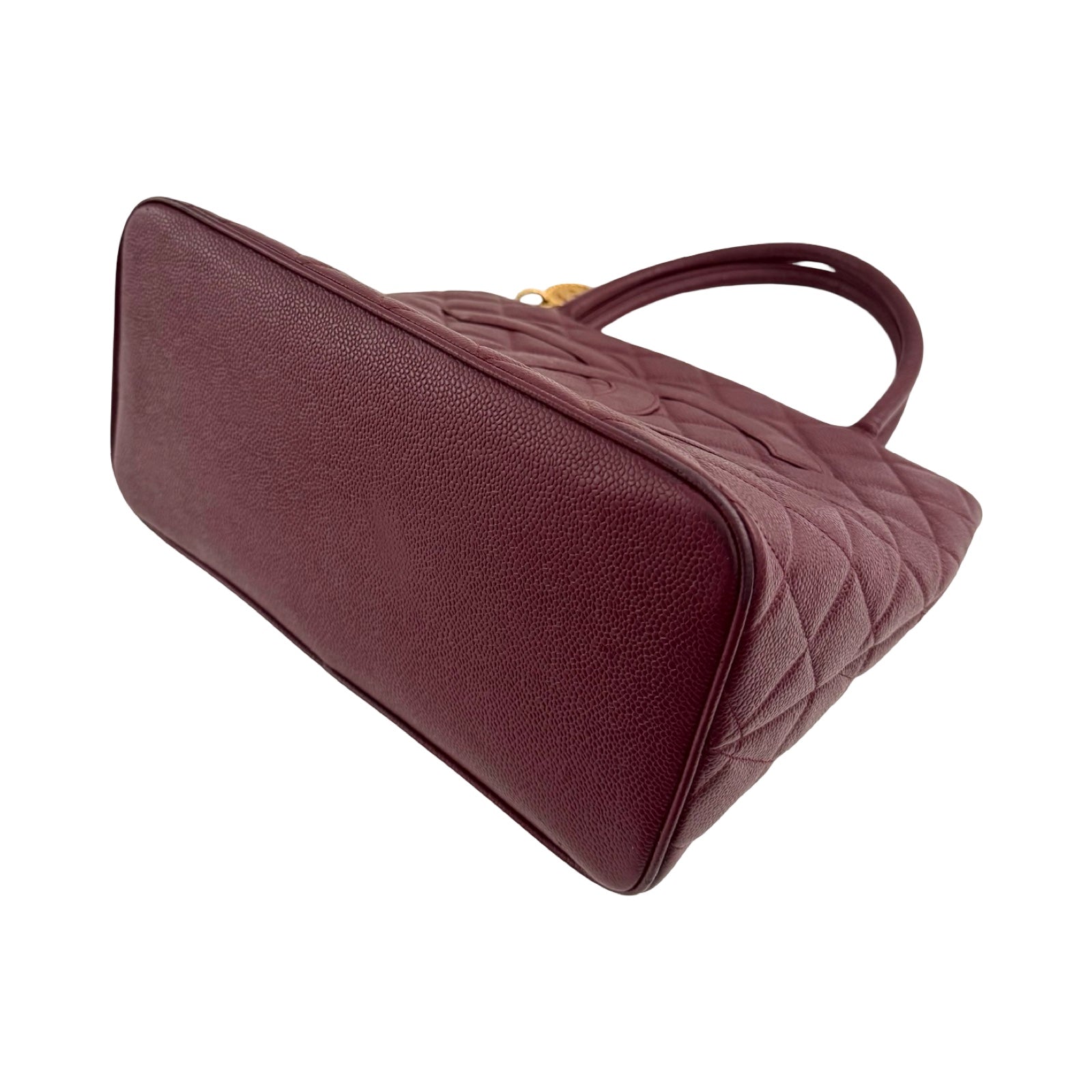 Chanel - CC Burgundy Quilted Caviar Medallion Tote