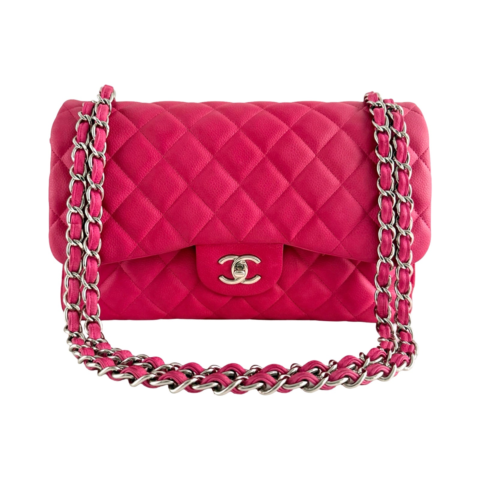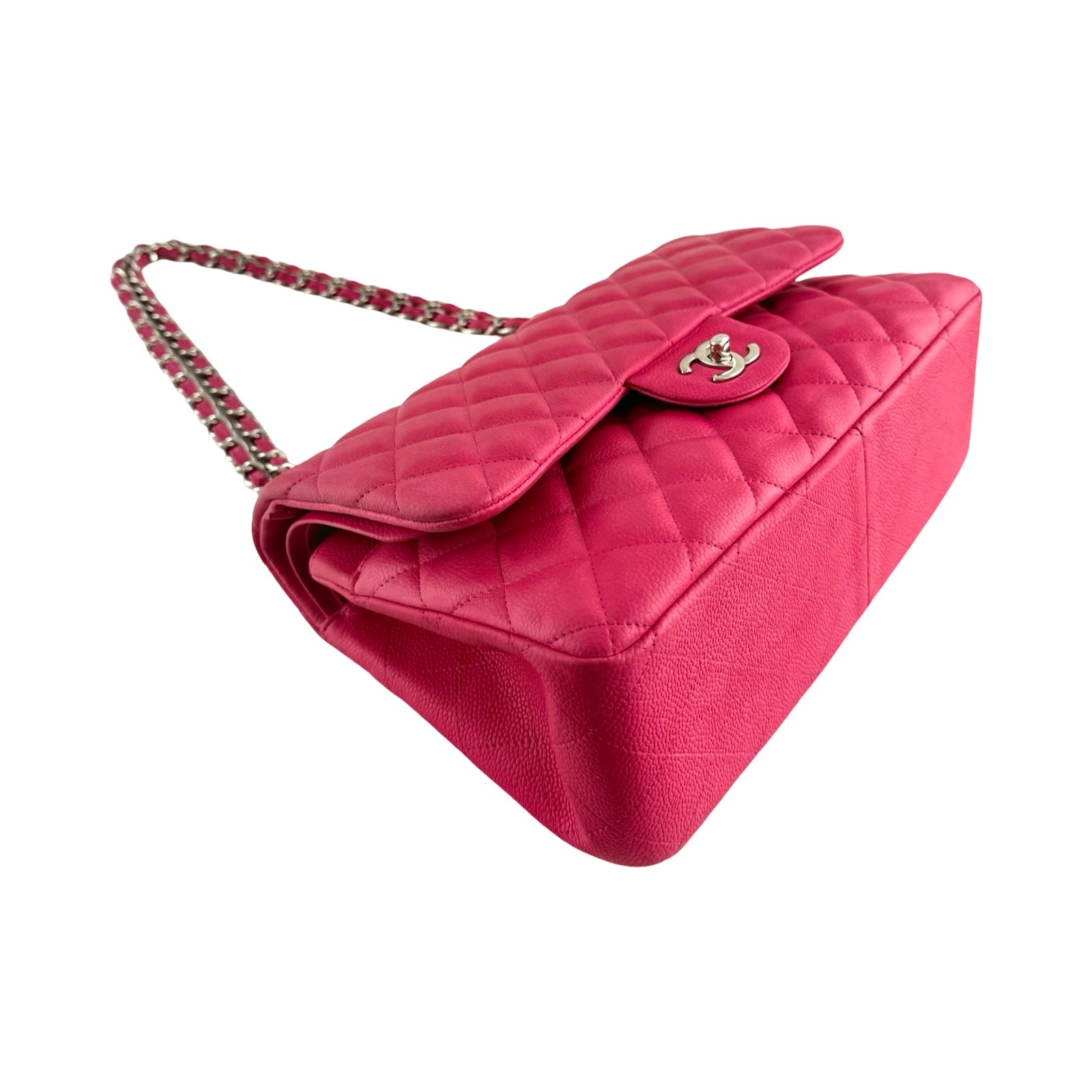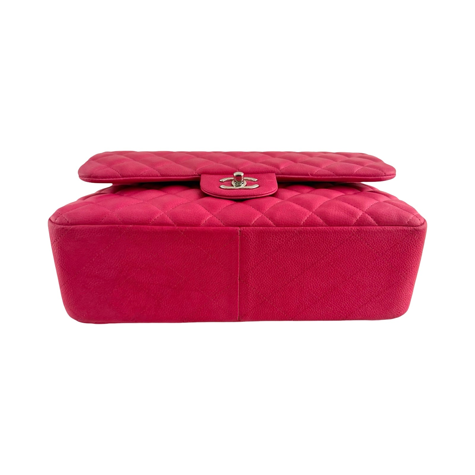 Chanel - CC Fuchsia Matte Pink Quilted Caviar Jumbo Double Flap