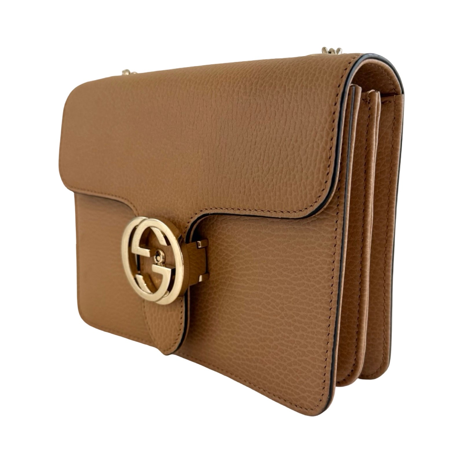 Gucci - Interlocking G Beige Leather Dollar Crossbody