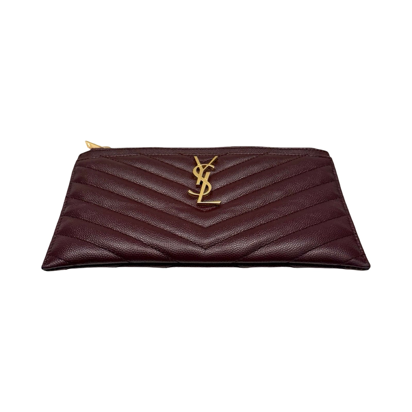 Saint Laurent - YSL Maroon Grain de Poudre Chevron Cassandra Pouch