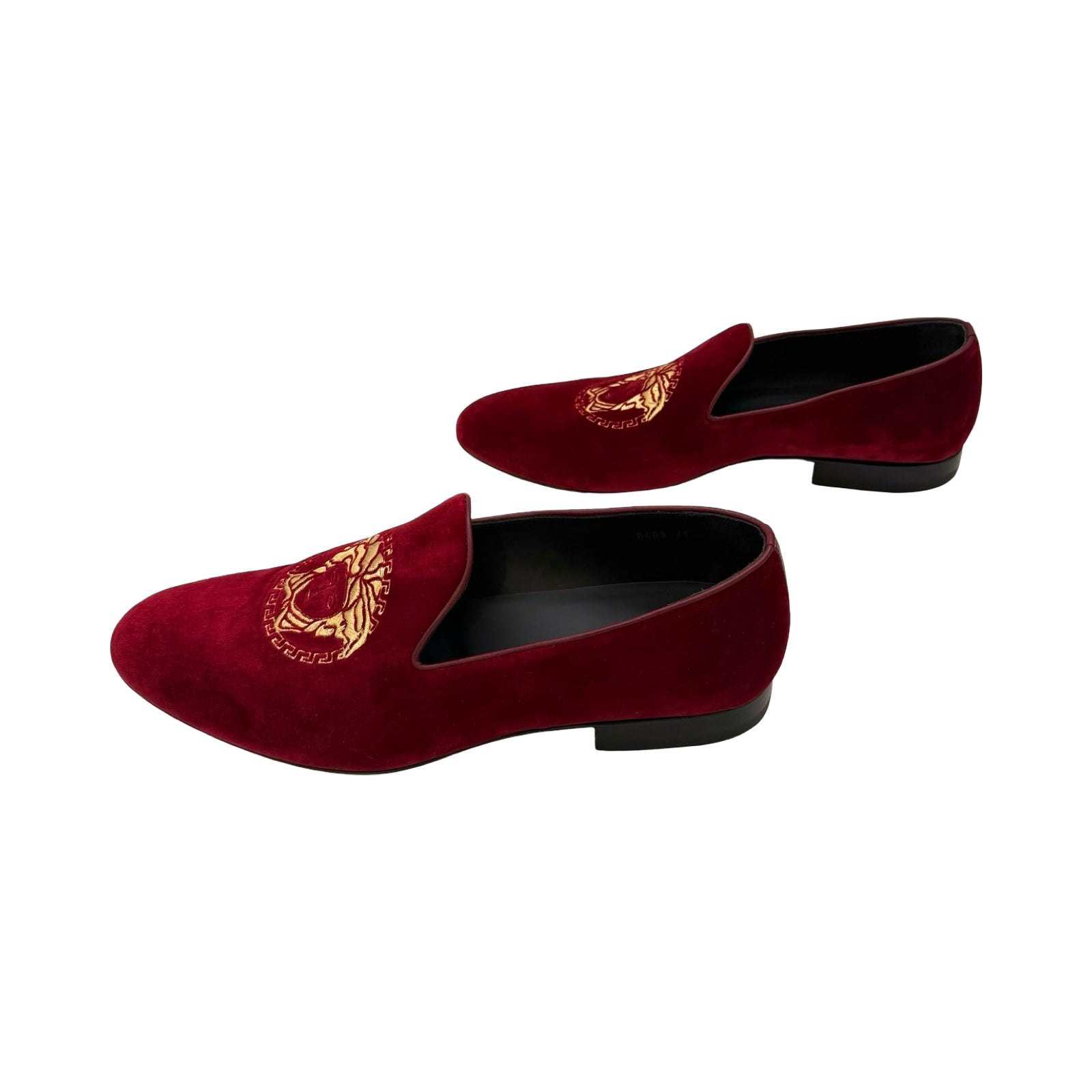 Versace - Men's Medusa Red & Gold Velvet Slip-on Loafers